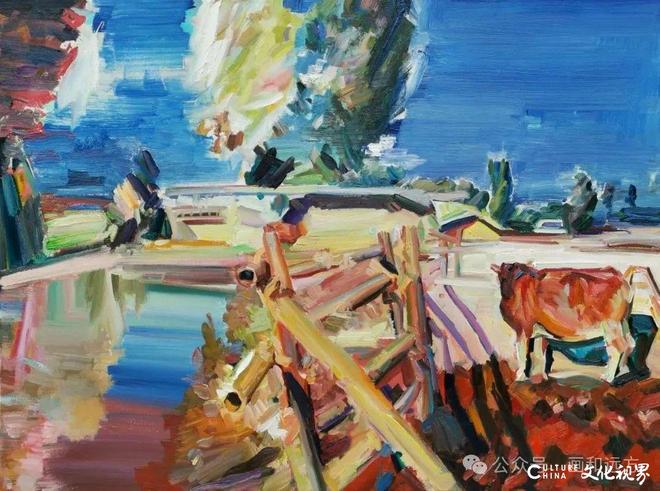 骆根兴的写生作品兼具形式与精神:形式上,他善于通过构图、光影、笔触与色彩表现自然与人居的真实感;精神上,他追求自然情趣与内在意境,不仅绘景,更绘心。写生对他的艺术语言养成与主题性创作具有重要的支撑作用。