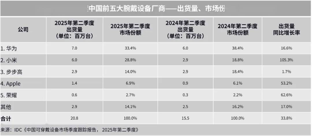 其中,华为 WATCH 5 系列与 FIT 4 系列作为近期推出的新品,市场表现尤为突出,出货量同比增长 11.7%,成为拉动华为腕戴设备销量增长的重要动力。